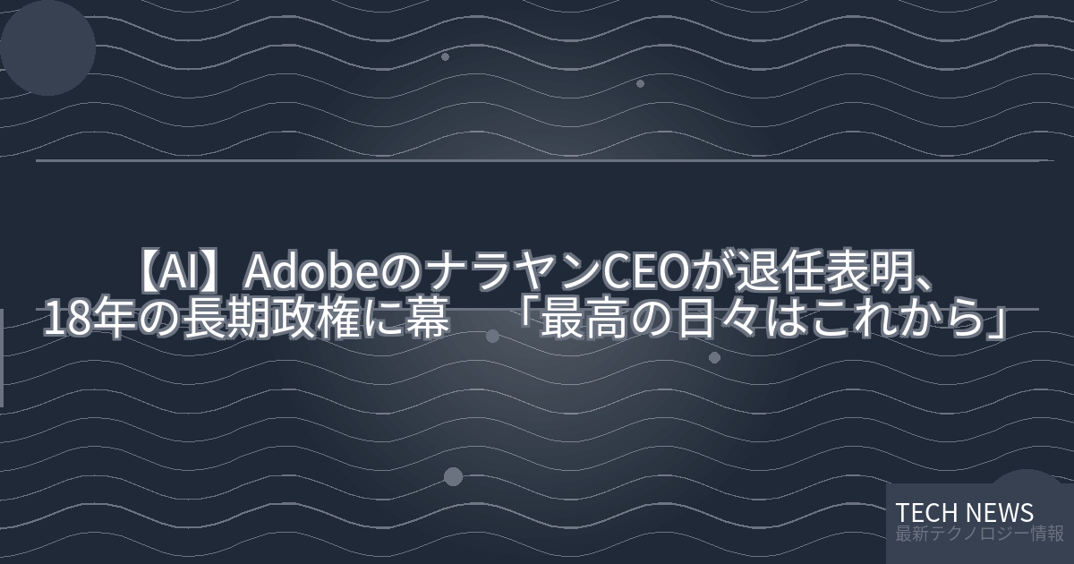 今回のニュースは、Adobeのシャンタヌ・ナラヤンCEOが18年間にわたる長期政権に幕を閉じることを発表したものです。ナラヤンCEOの在任期間は異例の長さで、その間にAdobeはSaaSビジネスへの転換を成し遂げ、売上高を大幅に拡大させてきました。特に近年では、AIを活用した機能の強化が大きな成長の原動力となっています。