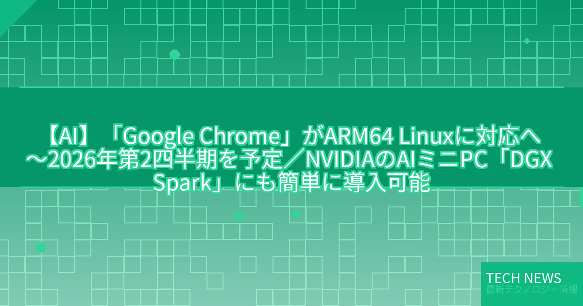 ・元記事タイトル:「Google Chrome」がARM64 Linuxに対応へ ~2026年第2四半期を予定/NVIDIAのAIミニPC「DGX Spark」にも簡単に導入可能