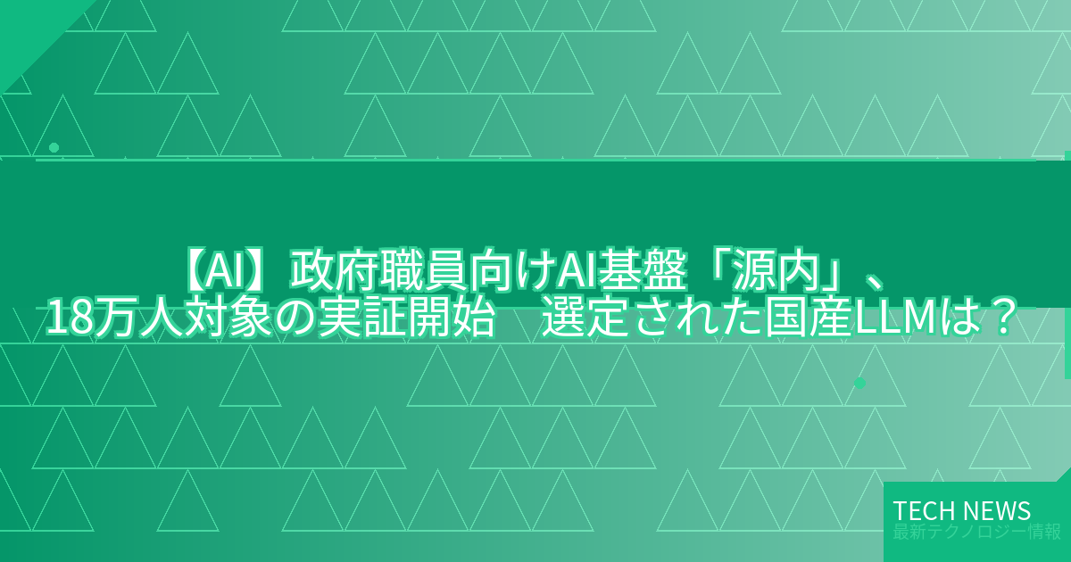 記事タイトル:政府職員向けAI基盤「源内」、18万人対象の実証開始 選定された国産LLMは?