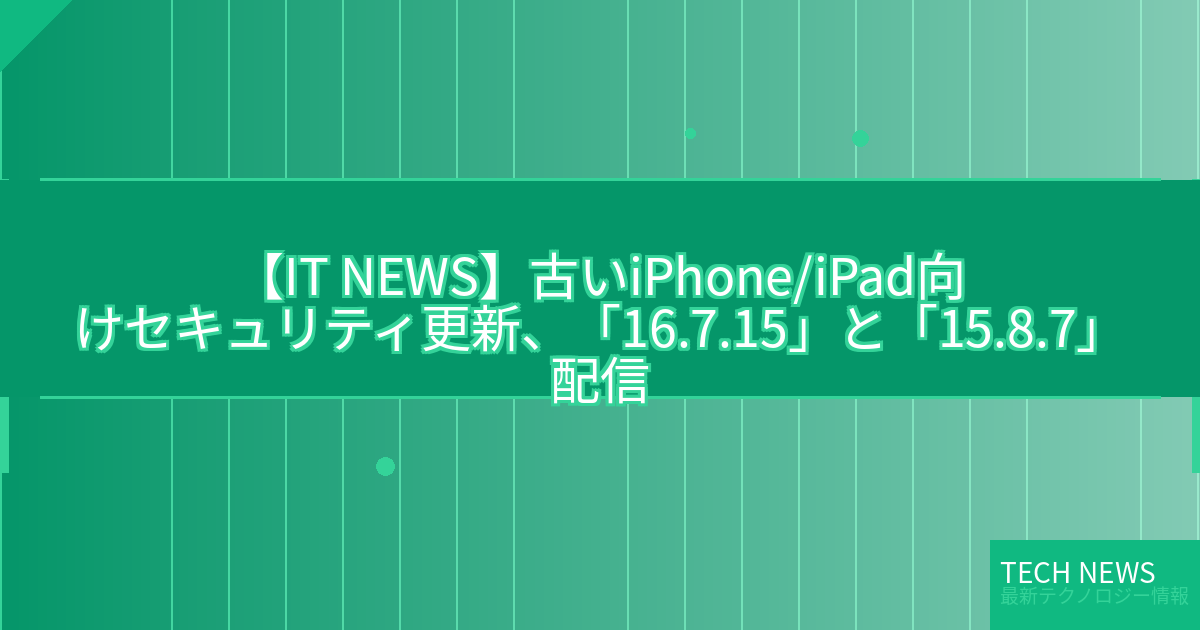 記事タイトル:古いiPhone/iPad向けセキュリティ更新、「16.7.15」と「15.8.7」配信