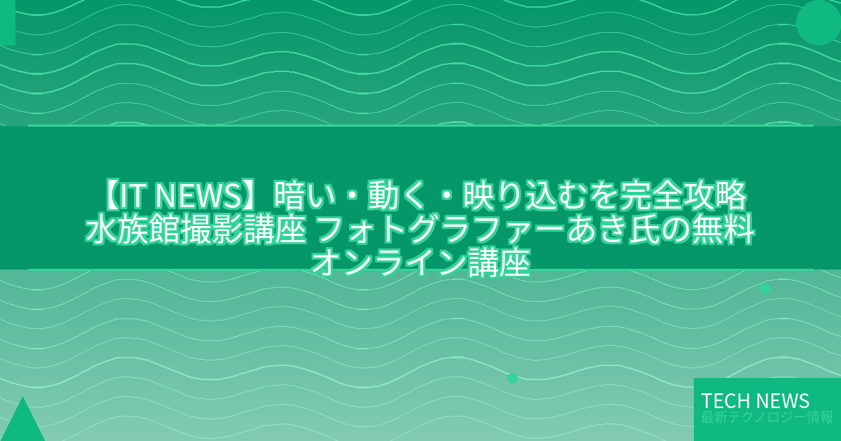 記事タイトル:暗い・動く・映り込むを完全攻略 水族館撮影講座 フォトグラファーあき氏の無料オンライン講座