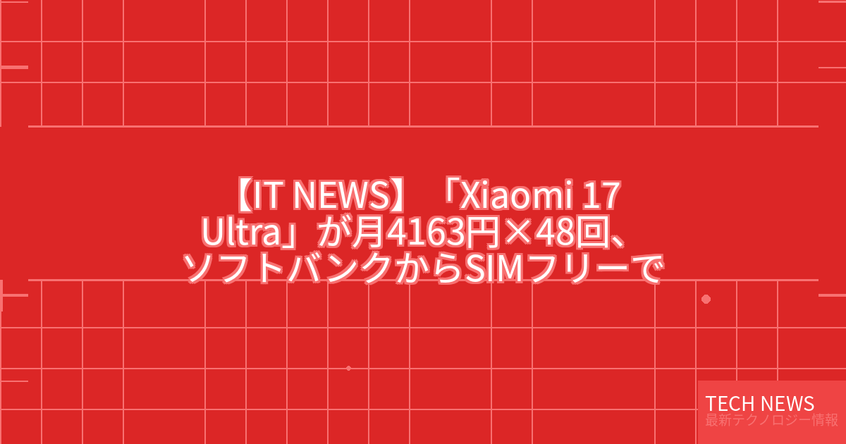 記事タイトル:「Xiaomi 17 Ultra」が月4163円×48回、ソフトバンクからSIMフリーで