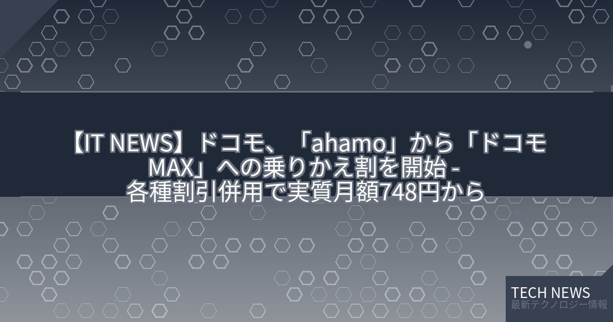 記事タイトル:ドコモ、「ahamo」から「ドコモ MAX」への乗りかえ割を開始 – 各種割引併用で実質月額748円から