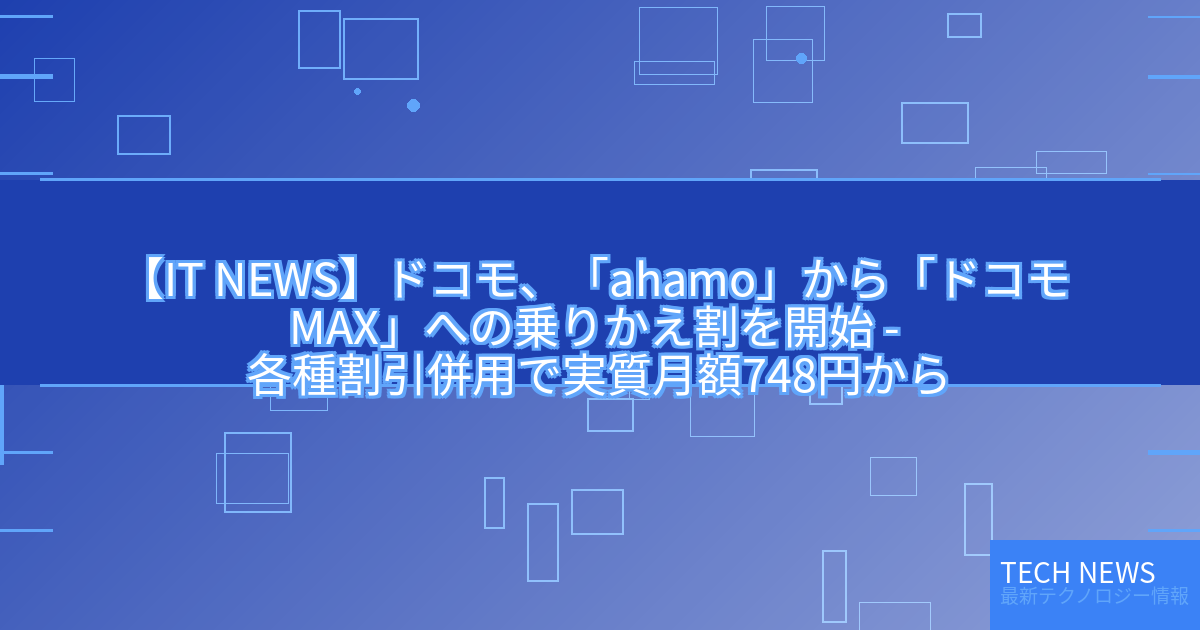 記事タイトル:ドコモ、「ahamo」から「ドコモ MAX」への乗りかえ割を開始 – 各種割引併用で実質月額748円から