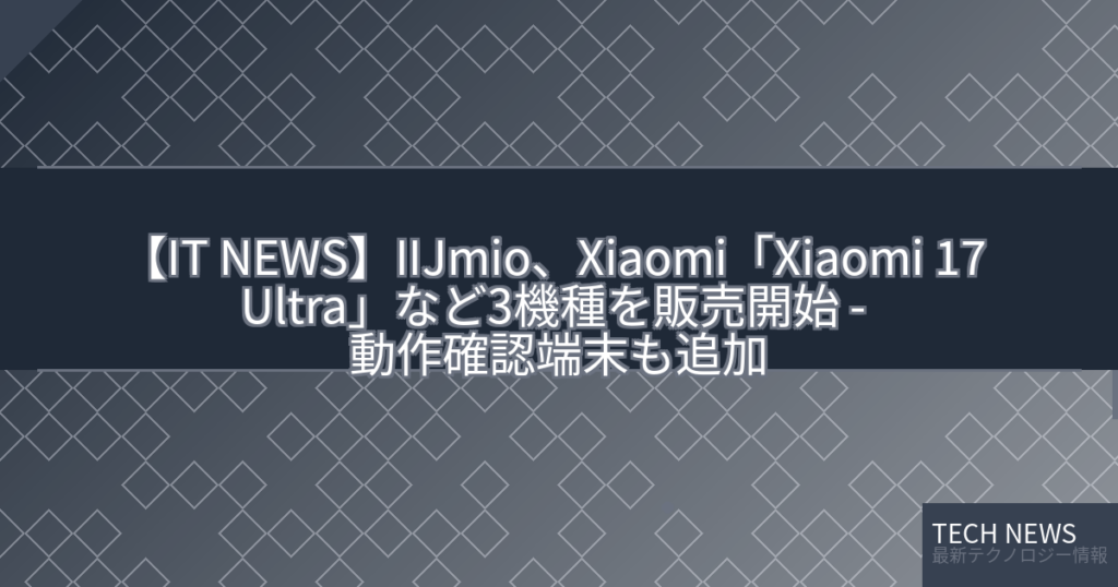 【IT NEWS】IIJmio、Xiaomi「Xiaomi 17 Ultra」など3機種を販売開始 – 動作確認端末も追加