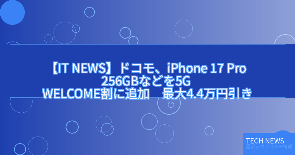 【IT NEWS】ドコモ、iPhone 17 Pro 256GBなどを5G WELCOME割に追加 最大4.4万円引き