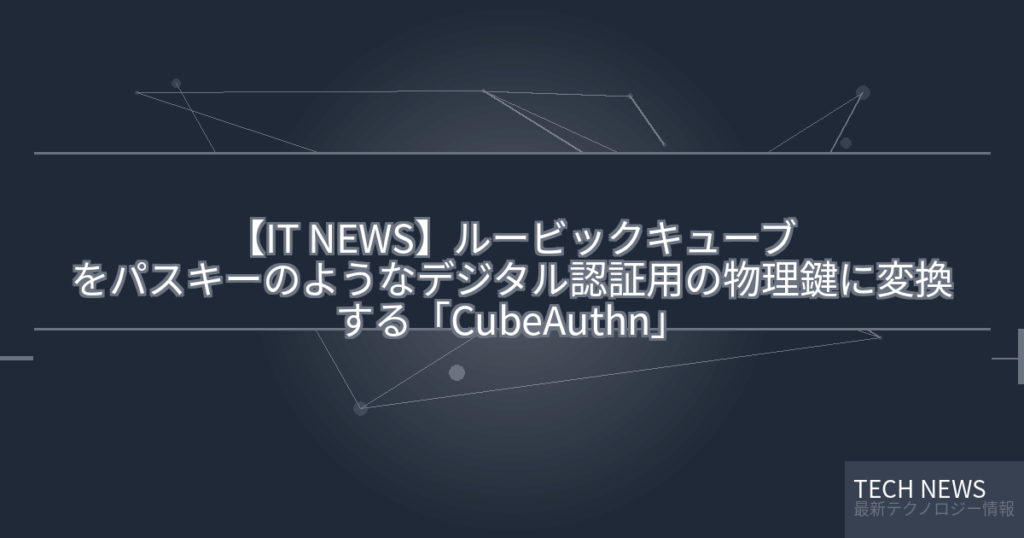 【IT NEWS】ルービックキューブをパスキーのようなデジタル認証用の物理鍵に変換する「CubeAuthn」