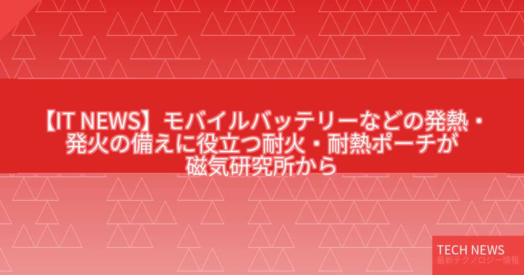 【IT NEWS】モバイルバッテリーなどの発熱・発火の備えに役立つ耐火・耐熱ポーチが磁気研究所から