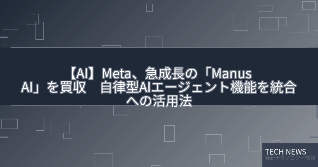 【AI】Meta、急成長の「Manus AI」を買収 自律型AIエージェント機能を統合への活用法