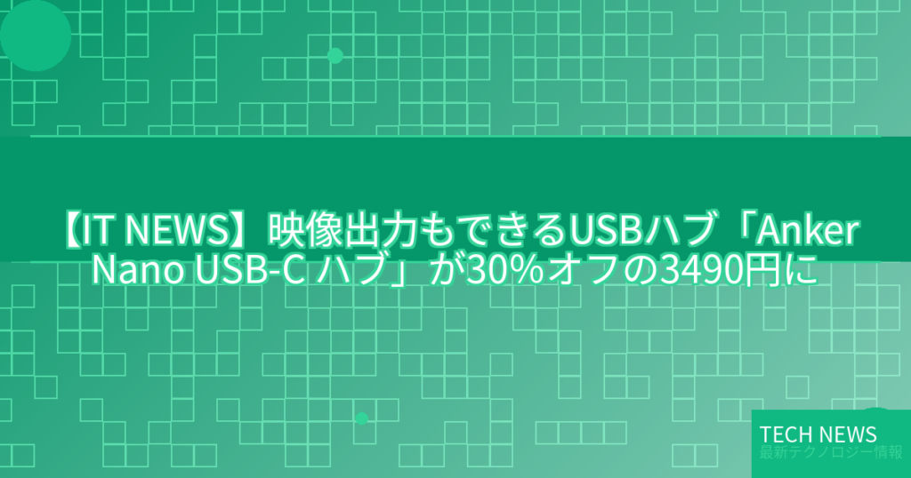 【IT NEWS】映像出力もできるUSBハブ「Anker Nano USB-C ハブ」が30%オフの3490円に