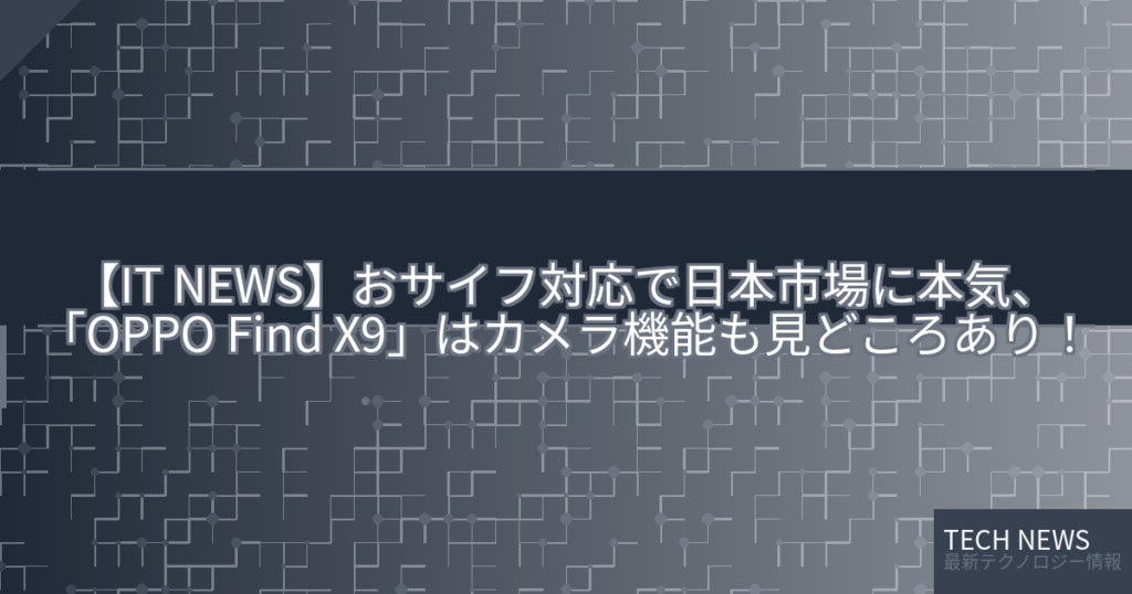 【IT NEWS】おサイフ対応で日本市場に本気、「OPPO Find X9」はカメラ機能も見どころあり!