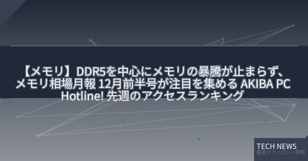 【メモリ】DDR5を中心にメモリの暴騰が止まらず、メモリ相場月報 12月前半号が注目を集める AKIBA PC Hotline! 先週のアクセスランキング 25年12月8日~25年12月15日