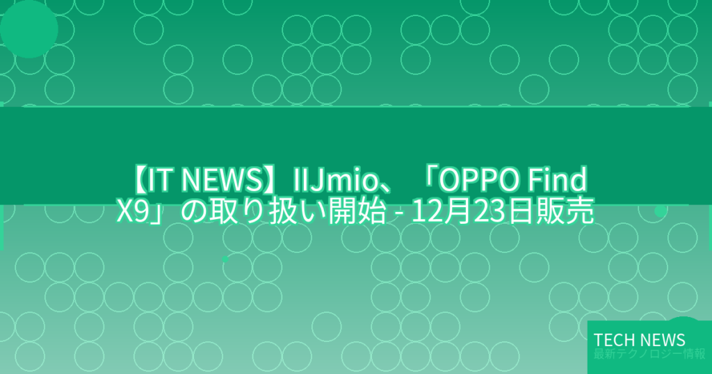 【IT NEWS】IIJmio、「OPPO Find X9」の取り扱い開始 – 12月23日販売