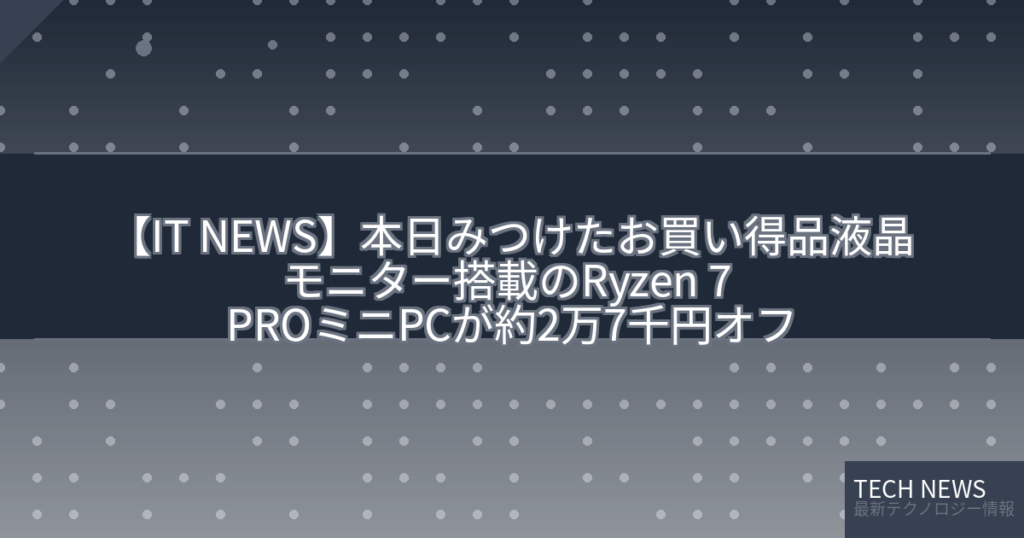 【IT NEWS】本日みつけたお買い得品液晶モニター搭載のRyzen 7 PROミニPCが約2万7千円オフ