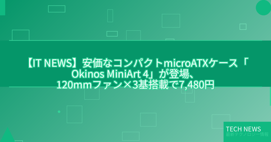 【IT NEWS】安価なコンパクトmicroATXケース「Okinos MiniArt 4」が登場、120mmファン×3基搭載で7,480円