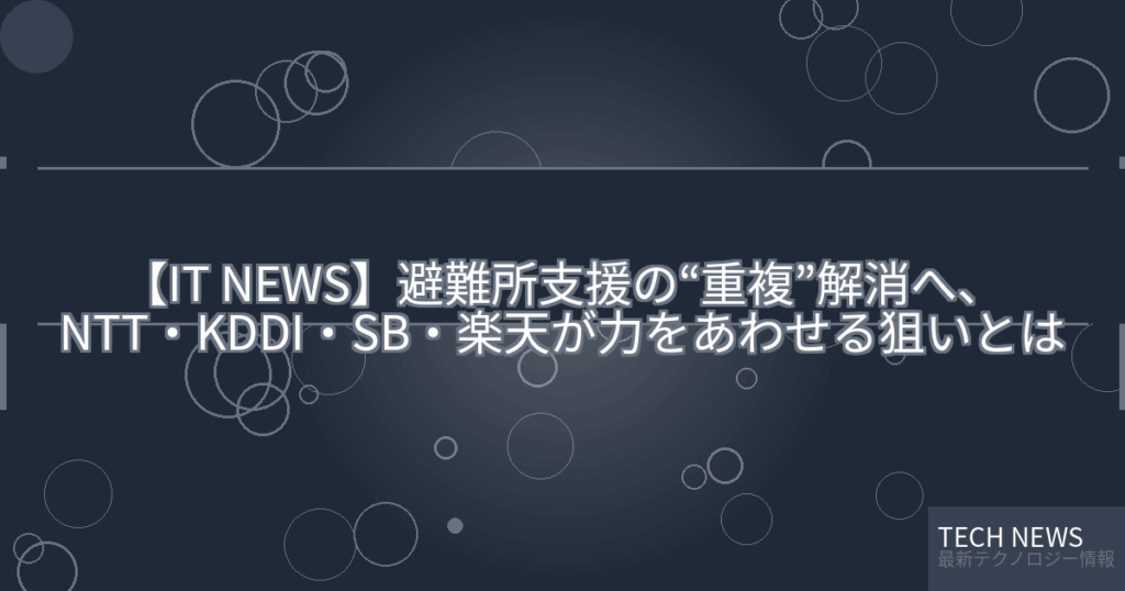 【IT NEWS】避難所支援の“重複”解消へ、NTT・KDDI・SB・楽天が力をあわせる狙いとは