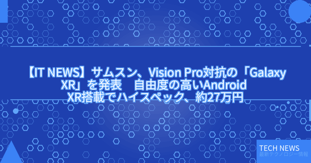 【IT NEWS】サムスン、Vision Pro対抗の「Galaxy XR」を発表 自由度の高いAndroid XR搭載でハイスペック、約27万円