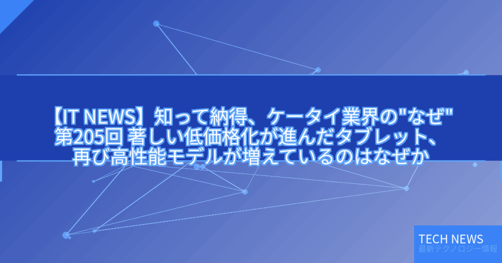 【IT NEWS】知って納得、ケータイ業界の”なぜ” 第205回 著しい低価格化が進んだタブレット、再び高性能モデルが増えているのはなぜか