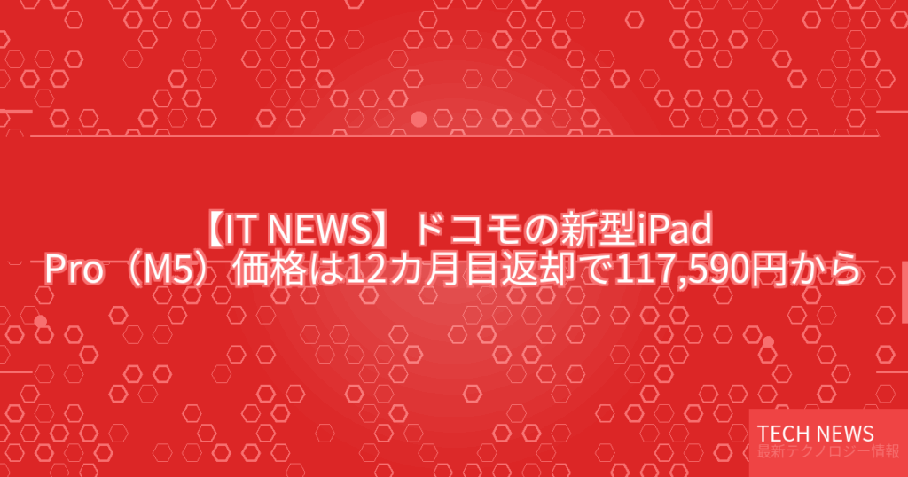 【IT NEWS】ドコモの新型iPad Pro(M5)価格は12カ月目返却で117,590円から