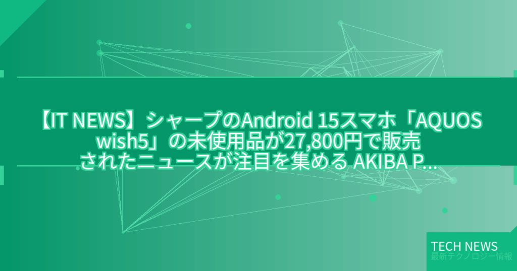 【IT NEWS】シャープのAndroid 15スマホ「AQUOS wish5」の未使用品が27,800円で販売されたニュースが注目を集める AKIBA PC Hotline! 先週のアクセスランキング 25年10月6日~25年10月13日