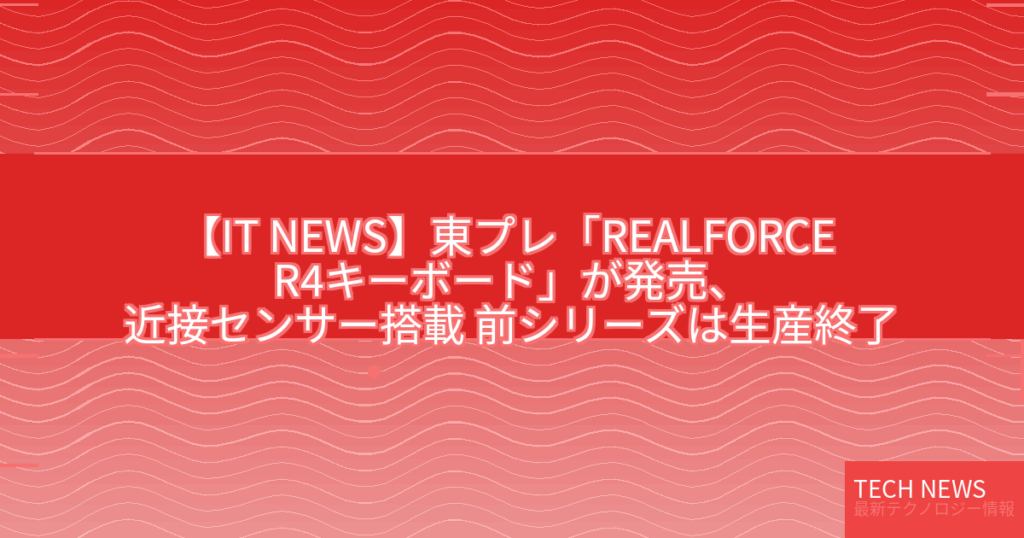 【IT NEWS】東プレ「REALFORCE R4キーボード」が発売、近接センサー搭載 前シリーズは生産終了