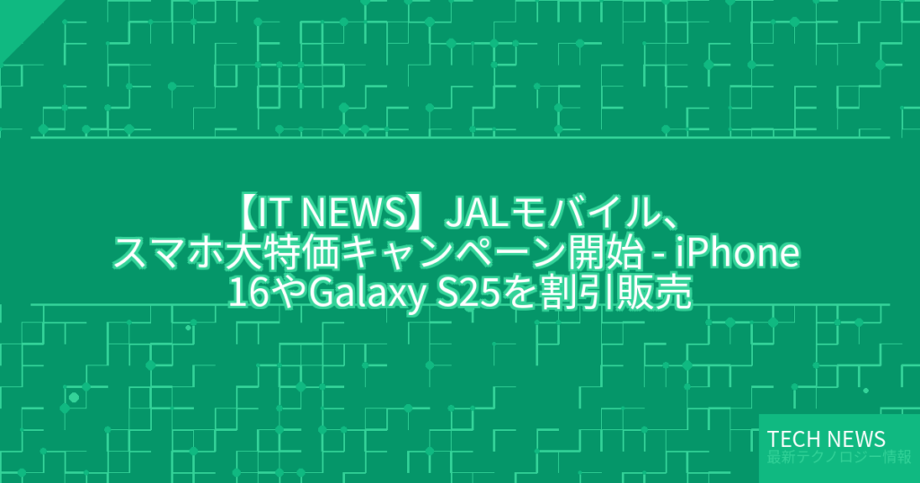 【IT NEWS】JALモバイル、スマホ大特価キャンペーン開始 – iPhone 16やGalaxy S25を割引販売