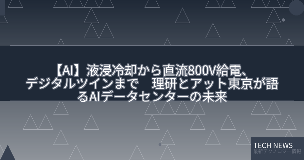 【AI】液浸冷却から直流800V給電、デジタルツインまで 理研とアット東京が語るAIデータセンターの未来