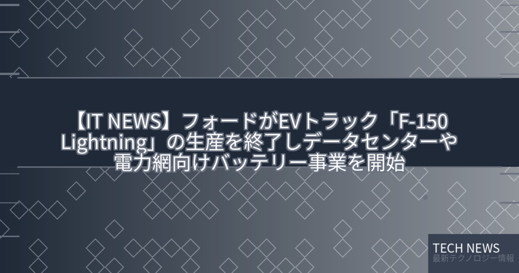 【IT NEWS】フォードがEVトラック「F-150 Lightning」の生産を終了しデータセンターや電力網向けバッテリー事業を開始