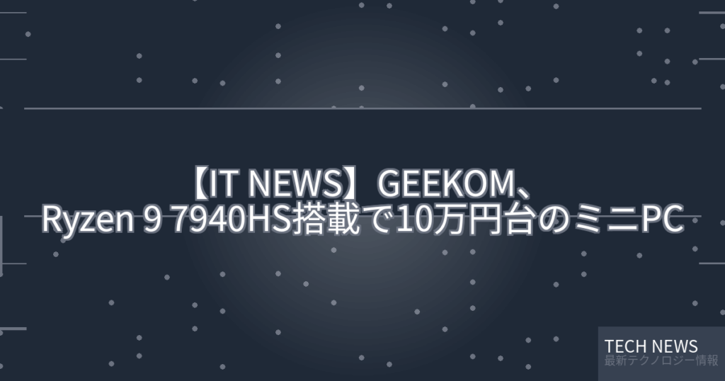 【IT NEWS】GEEKOM、Ryzen 9 7940HS搭載で10万円台のミニPC