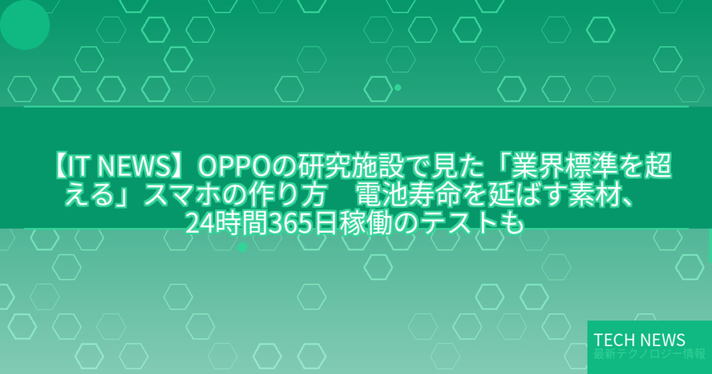 【IT NEWS】OPPOの研究施設で見た「業界標準を超える」スマホの作り方 電池寿命を延ばす素材、24時間365日稼働のテストも