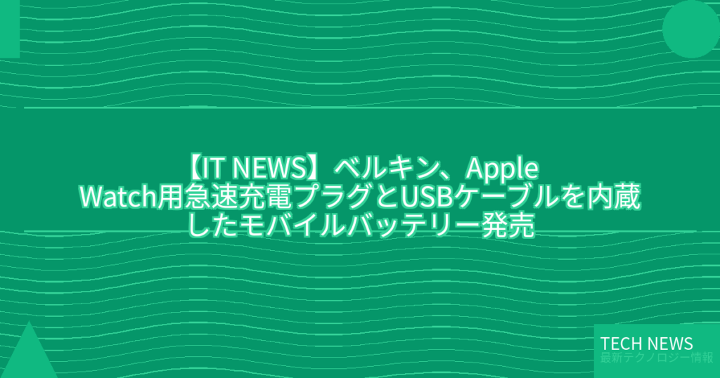 【IT NEWS】Apple Watch充電器とUSB-Cケーブルを内蔵したモバイルバッテリー、ベルキンから