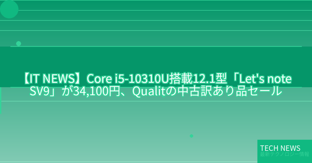 【IT NEWS】Core i5-10310U搭載12.1型「Let’s note SV9」が34,100円、Qualitの中古訳あり品セール