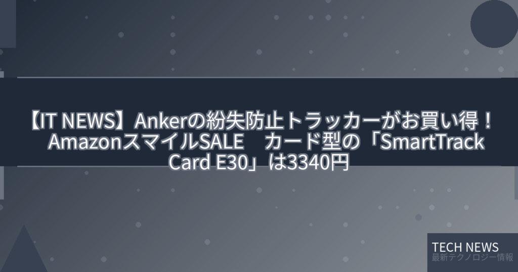 【IT NEWS】Ankerの紛失防止トラッカーがお買い得! AmazonスマイルSALE カード型の「SmartTrack Card E30」は3340円