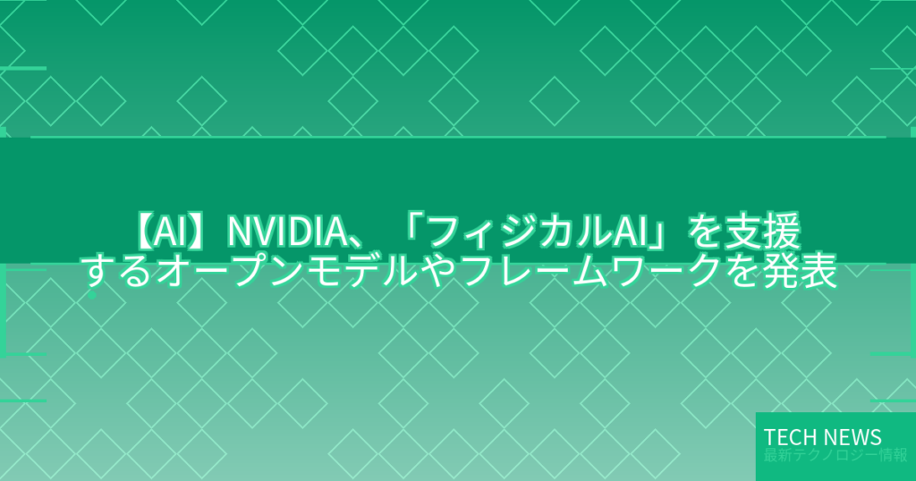 【AI】NVIDIA、「フィジカルAI」を支援するオープンモデルやフレームワークを発表