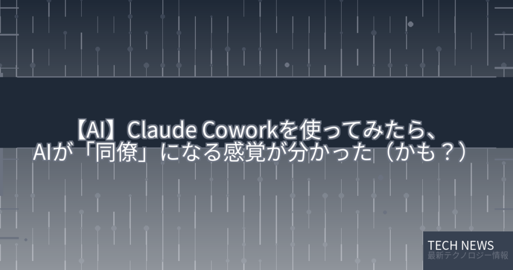 【AI】Claude Coworkを使ってみたら、AIが「同僚」になる感覚が分かった(かも?)