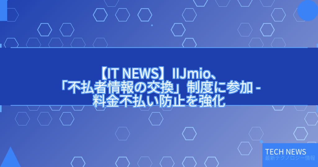 【IT NEWS】IIJmio、「不払者情報の交換」制度に参加 – 料金不払い防止を強化