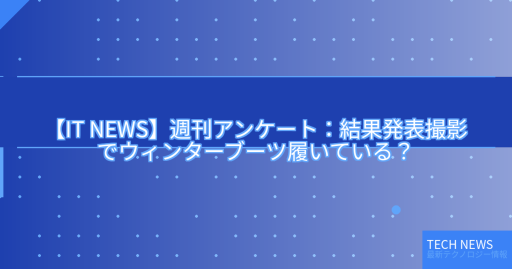 【IT NEWS】週刊アンケート:結果発表撮影でウィンターブーツ履いている?
