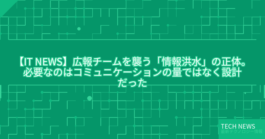 【IT NEWS】広報チームを襲う「情報洪水」の正体。必要なのはコミュニケーションの量ではなく設計だった