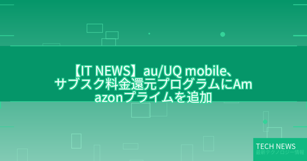 【IT NEWS】au/UQ mobile、サブスク料金還元プログラムにAmazonプライムを追加