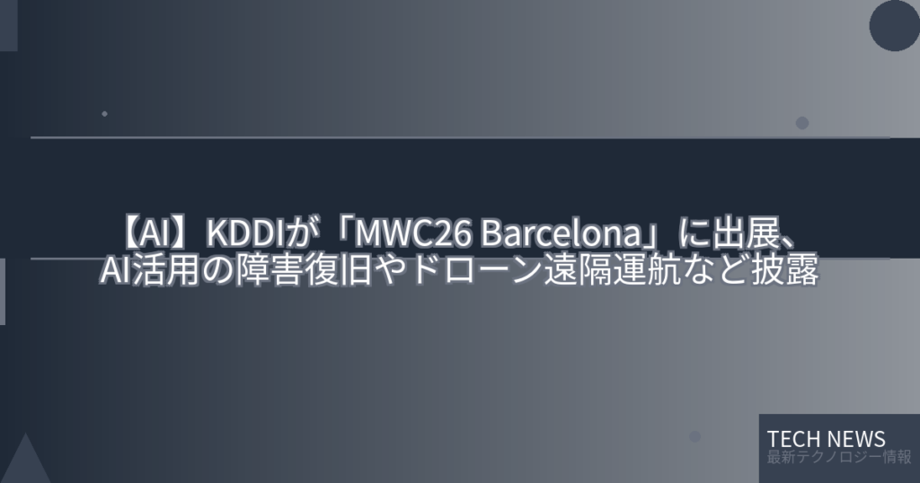 【AI】KDDIが「MWC26 Barcelona」に出展、AI活用の障害復旧やドローン遠隔運航など披露
