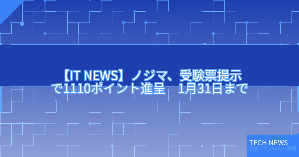 【IT NEWS】ノジマ、受験票提示で1110ポイント進呈 1月31日まで