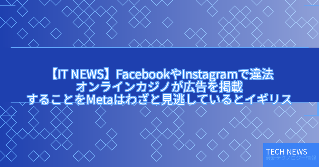 【IT NEWS】FacebookやInstagramで違法オンラインカジノが広告を掲載することをMetaはわざと見逃しているとイギリス賭博委員会が批判