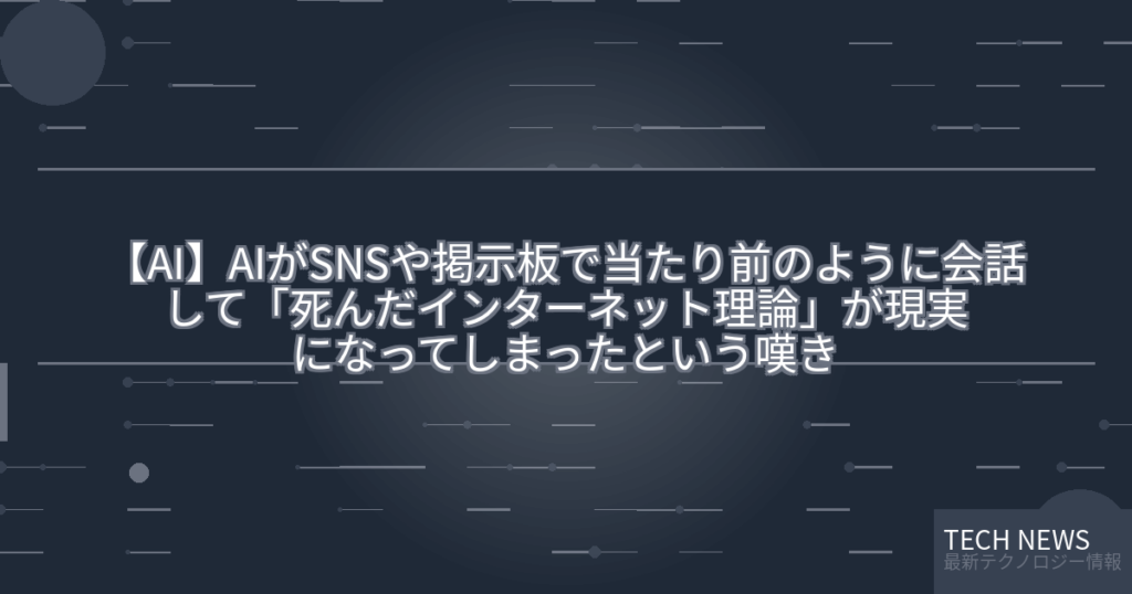 死んだインターネット理論とは、「インターネットに占める人間の有機的な活動が減少し、ボットやアルゴリズムによる自動生成コンテンツに取って代わられている」とする理論です。プログラマーのドミトリー・クドリャフツェフ氏が、「ソーシャルニュースサイトのHacker NewsでAIが当たり前のようにチャットして... -