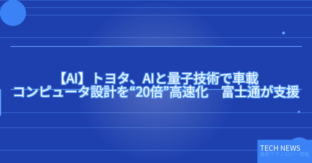 【AI】トヨタ、AIと量子技術で車載コンピュータ設計を“20倍”高速化 富士通が支援