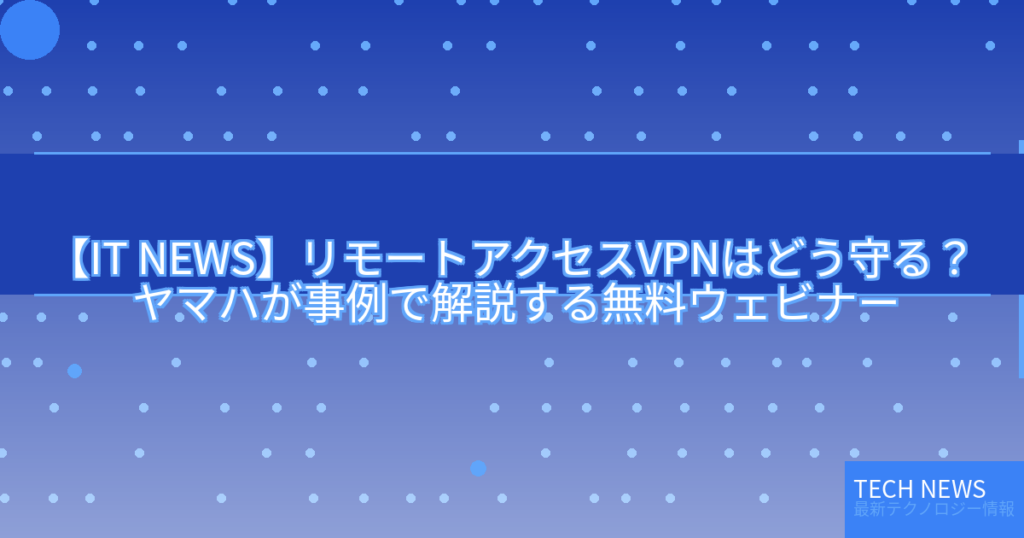 【IT NEWS】リモートアクセスVPNはどう守る? ヤマハが事例で解説する無料ウェビナー
