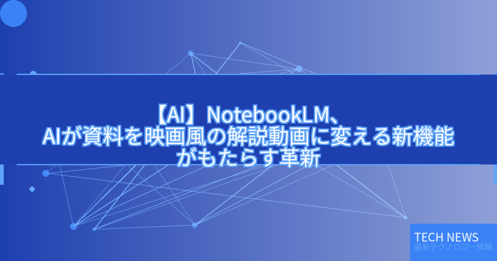 【AI】NotebookLM、AIが資料を映画風の解説動画に変える新機能がもたらす革新