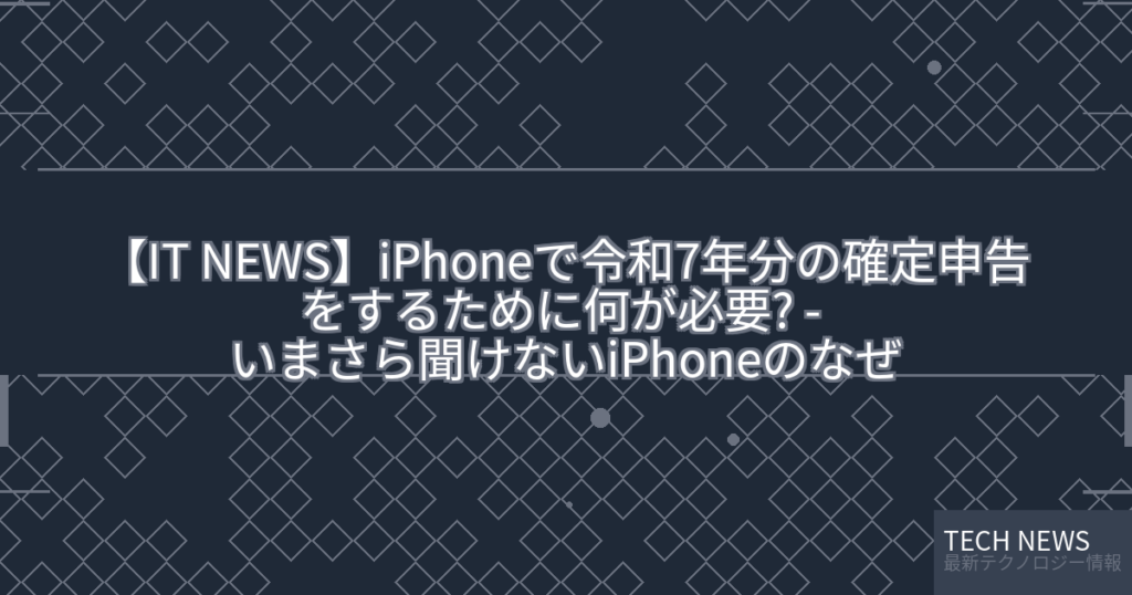 【IT NEWS】iPhoneで令和7年分の確定申告をするために何が必要? – いまさら聞けないiPhoneのなぜ
