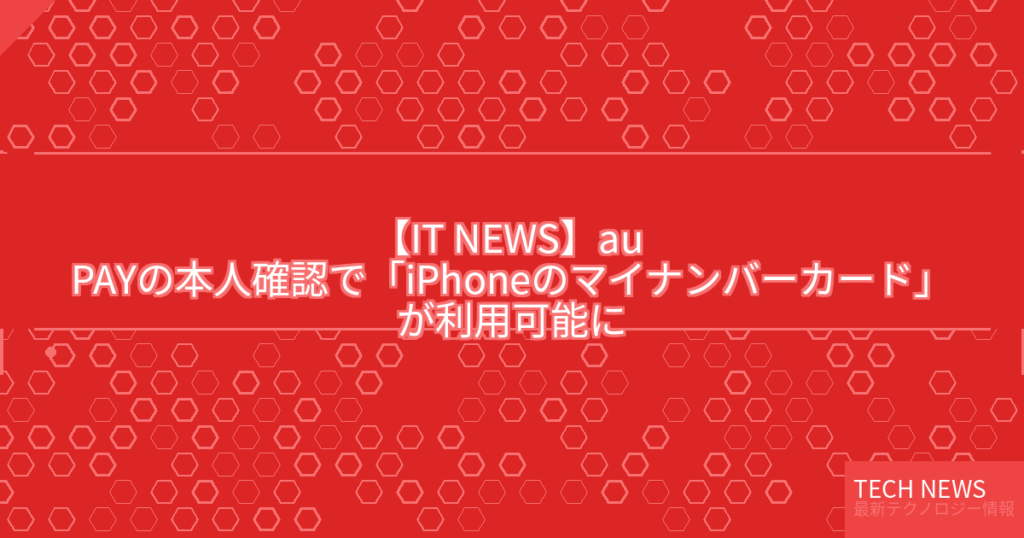 【IT NEWS】au PAYの本人確認で「iPhoneのマイナンバーカード」が利用可能に