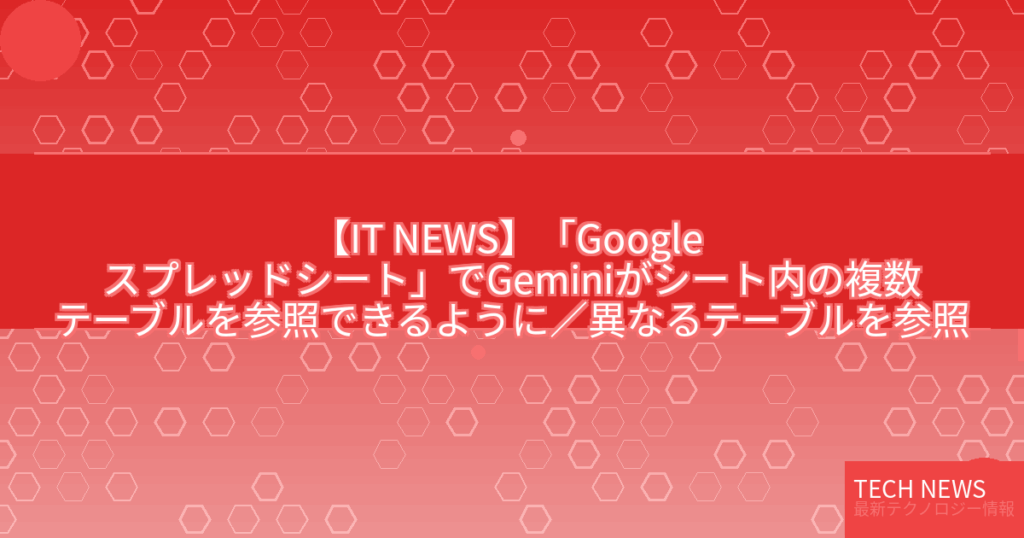 【IT NEWS】「Google スプレッドシート」でGeminiがシート内の複数テーブルを参照できるように/異なるテーブルを参照したXLOOKUP関数を使った数式やグラフの生成も可能
