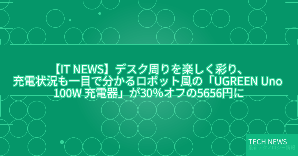 【IT NEWS】デスク周りを楽しく彩り、充電状況も一目で分かるロボット風の「UGREEN Uno 100W 充電器」が30%オフの5656円に
